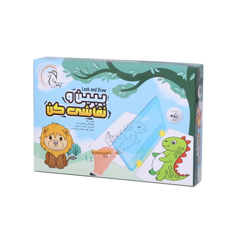 بسیاری از کودکان به دلیل عدم درک چگونگی انتقال اشکال سه بعدی بر روی سطح کاغذ و تبدیل آنها به اشکال دو بعدی، به سادگی طرف نقاشی نمیروند. ببین و نقاشی کن با ساده کردن طراحی خطوط محیطی روند درک این تبدیل را تسریع میکند. این وسیله شامل یک صفحهی طلقی است که روی دو پایهی کوچک سوار میشود. روش کار به این صورت است که یک تصویر آماده یا حتی یک شیء را در یک طرف طلق قرار میدهیم و یک کاغذ سفید را در طرف دیگر. با توجه به انعکاس تصویر روی طلق میتوان خطوط محیطی آن را روی کاغذ کشید. همراه با این وسیله ۱۶ طرح بسیار ساده عرضه شده است که برای شروع میتوان از آنها استفاده کرد.