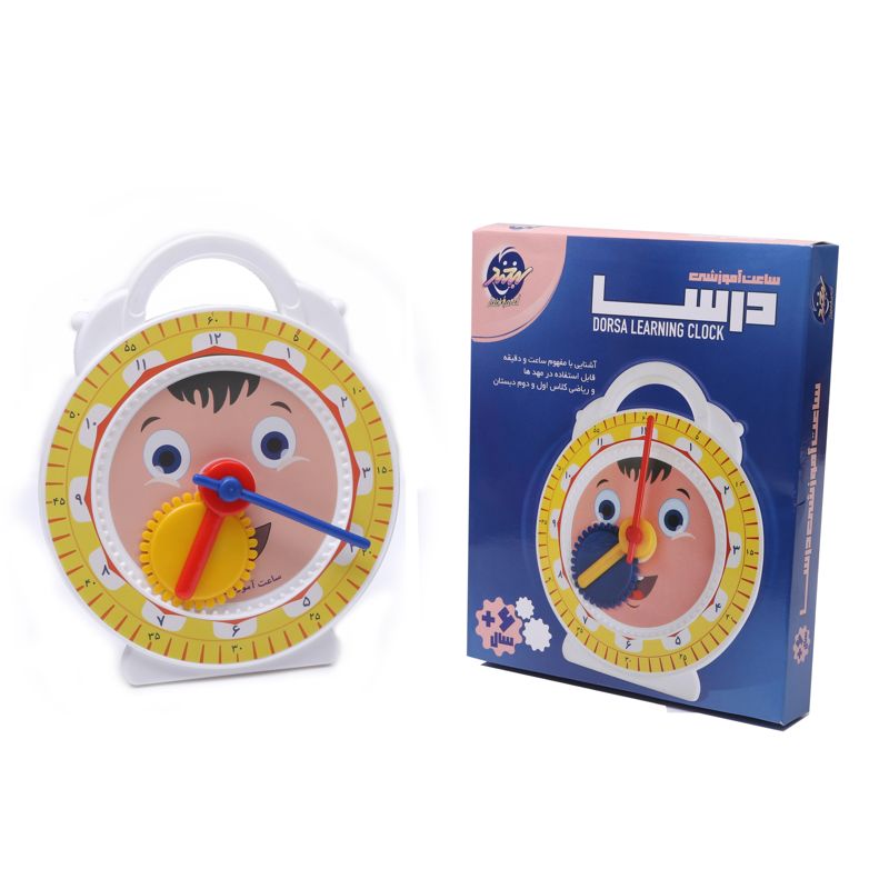 در این مجموعه یک عدد ساعت پلاستیکی پایهدار همراه با عقربههای متحرک و اهرم گردش عقربهها ارائه شده است. هدف اصلی از این محصول آموزش ساعت و مفهوم زمان به دانشآموزان مقطع دبستان است. با استفاده از این ساعت دانشآموزان به راحتی میتوانند مفهوم ساعت و دقیقه را بیاموزند. چرخ دنده بزرگ روی صفحهی این ساعت این امکان را برای دانشآموزان فراهم میکند تا با یک دور کامل چرخاندن عقربه دقیقه شمار، عقربه ساعت شمار یک ساعت جابجا شود. این وسیله میتواند یکی از ابزارهای آموزشی بسیار مؤثر در سر کلاس باشد.