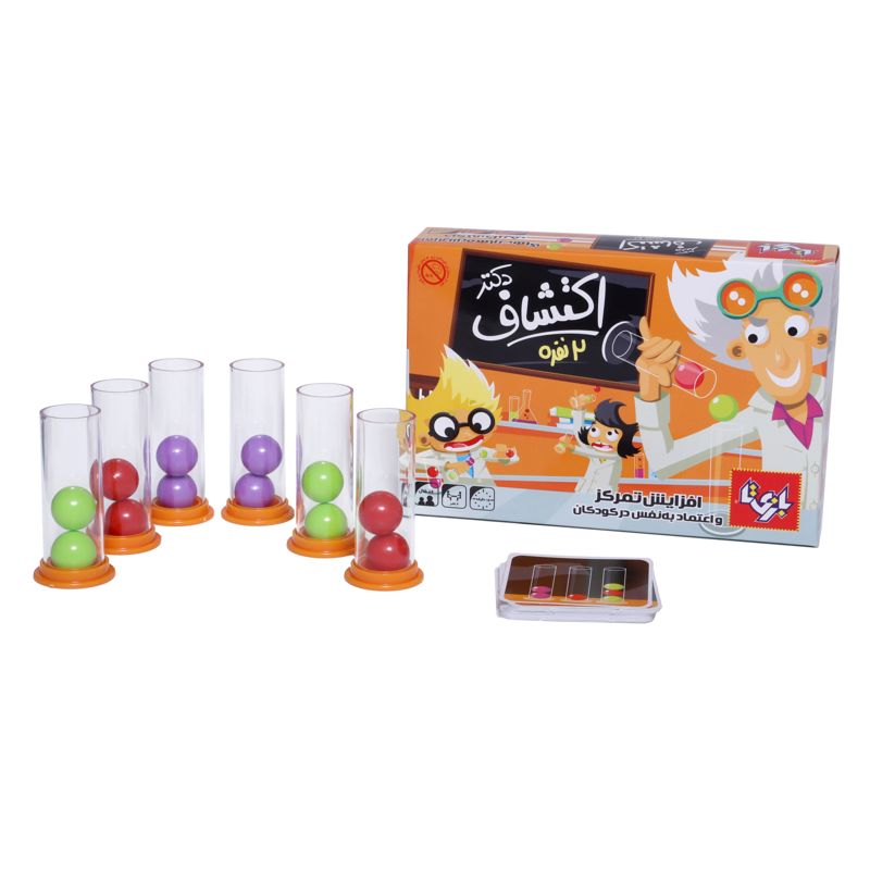 دکتر اکتشاف با توجه به ابزارهایی که دراختیار بازیکنان قرار میدهد از بازیهای جذاب و بسیار هیجانانگیز محسوب میشود. در این بازی به هر بازیکن سه لوله آزمایش که داخل هر یک دو عدد توپک همرنگ هست، داده میشود. کارتهای الگو پس از بُر زدن، رو به پایین، در وسط قرار میگیرند. یکی از بازیکنان یک کارت را برمیگرداند؛ بازیکنی که زودتر بتواند با جا به جا کردن توپهای رنگی آنها را به صورت الگوی کارت درآورد، آن کارت را به عنوان امتیاز برمیدارد. بازیکنان هنگام جا به جا کردن توپهای رنگی داخل لولههای آزمایش نباید توپ را با دست لمس کنند یا آنها را زمین بیندازند. از جمله مهارتهایی که با انجام این بازی تقویت میشود، میتوان به هماهنگی چشم و دست، سرعت عمل، قدرت تطبیق و حل مسئله اشاره کرد. این بازی به صورت ۴ نفره هم عرضه میشود.