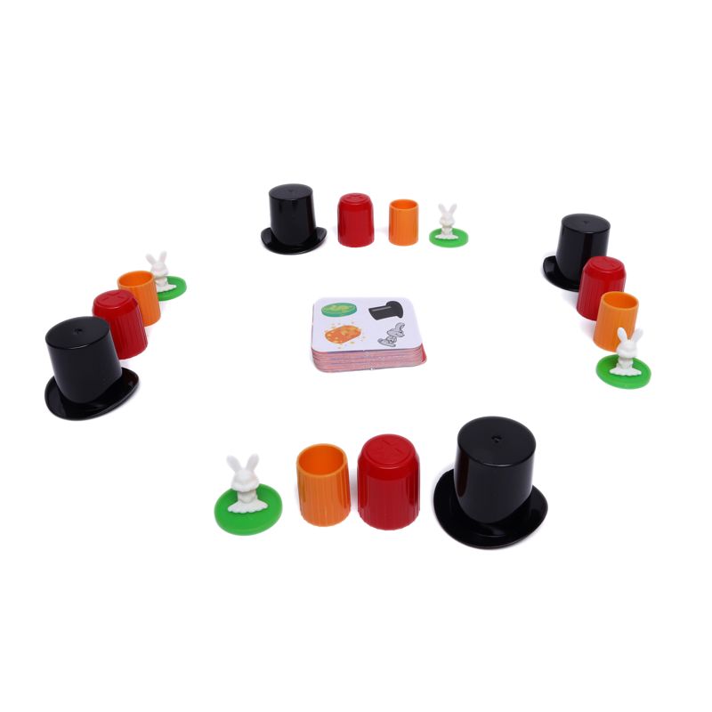 این بازی که با هدف تقویت دقت و تمرکز، چابکی دست و افزایش هوش اجتماعی کودکان طراحی شده، دارای تعدادی وسایل شعبدهبازی شامل کلاه، فنجان، استوانه، سکه و خرگوش است. روش بازی به این صورت است که به هر یک از بازیکنان یک دست وسایل شعبدهبازی داده میشود. کارتهای بازی نیز بُر خورده، به پشت در وسط بازی قرار میگیرد. یکی از بازیکنان یکی از کارتها را رو میکند و همهی بازیکنان بایدبه سرعت وسایل خود را طبق کارت طوری روی هم بچینند که: وسایل رنگی روی کارت دیده شوند، وسیلهی خاکستری دیده نشود و از وسیلهای که در کارت نیست، در چیدمان استفاده نشود.کسی که زودتر از همه وسایلش را طبق کارت بچیند، کارت را به عنوان امتیاز برای خود برمیدارد و کارت بعدی را رو میکند.