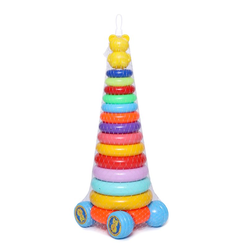 درک مفهوم اندازه و ترتیب از جمله مهارتهای پایهای و اساسی است که با استفاده از بازیهای مخصوص میتوان کودک را از سنین پایین با آنها آشنا کرد. حلقه هوش خرسی چرخدار با رنگهای متنوع این امکان را میدهد که کودک در حین بازی، با آزمون و خطا متوجه شود که باید حلقهها را به ترتیب اندازه روی هم قرار دهد. از این بازی جهت آموزش رنگها، درک اندازه، ترتیب و توالی، و بسیاری دیگر از مفاهیم میتوان استفاده کرد. عروسک خرسی روی مخروط بر جذابیت بازی برای کودکان میافزاید و چرخدار بودن آن باعث میشود کودکان بتوانند بازیهای کشیدنی و هل دادنی را هم با این محصول انجام دهند. حلقه هوش خرسی چرخدار در اندازهی متوسط نیز عرضه میشود.