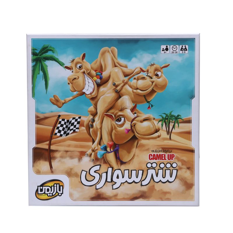 قرار است بزرگترین مسابقهی شتر سواری برگزار شود و شما در نقش یکی از سران قبایل، پیشبینی میکنید که کدام شتر شانس این را دارد که اول از همه از خط پایان بگذرد. اما برای کسب درآمد از پیشبینی و پیروز شدن در بازی، تنها شانس کافی نیست. باید با دقت مسابقه را دنبال کنید و زمانبندی دقیقی داشته باشید. شتر سواری یک بازی بسیار جذاب خانوادگی است که در سال ۲۰۱۴ با نام انگلیسی Camel up عنوان بهترین بازی سال را به دست آورده است. شتر سواری را میتوان ۲ تا ۸ نفره بازی کرد اما با اضافه کردن بستهی سوپر کاپ که جداگانه عرضه میشود، میتوانید تعداد بازیکنان را به ۱۰ نفر برسانید و با کمک اجزای جدید روشهای جدید و جذابی را به بازی اضافه کنید.