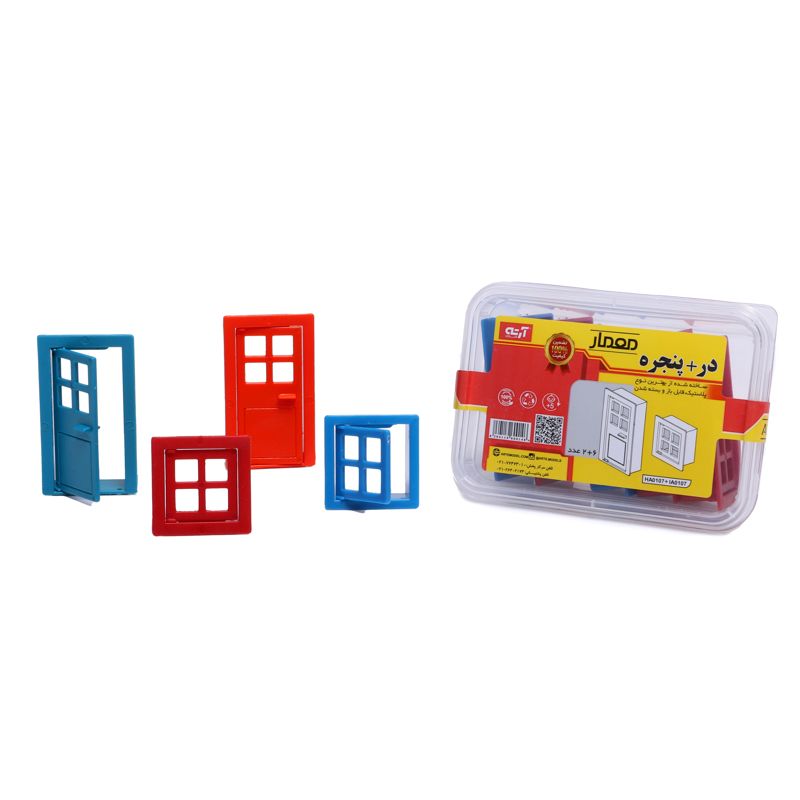 این محصول شامل ۲ عدد در و ۶ عدد پنجره، ساخته شده از بهترین نوع پلاستیک است. از آن‌ها می‌توان به طور مستقل یا در ترکیب با معمار کلبه و دیگر بسته‌های معمار، نظیر بسته آجر ۱۲۰ تایی، بسته نیم آجر ۶۰ تایی، بسته سقف ۱۲ تایی و بسته ملات و کمچه استفاده کرد. قابلیت باز و بسته شدن در و پنجره‌ها بر جذابیت آن‌ها برای کودکان می‌افزاید.
