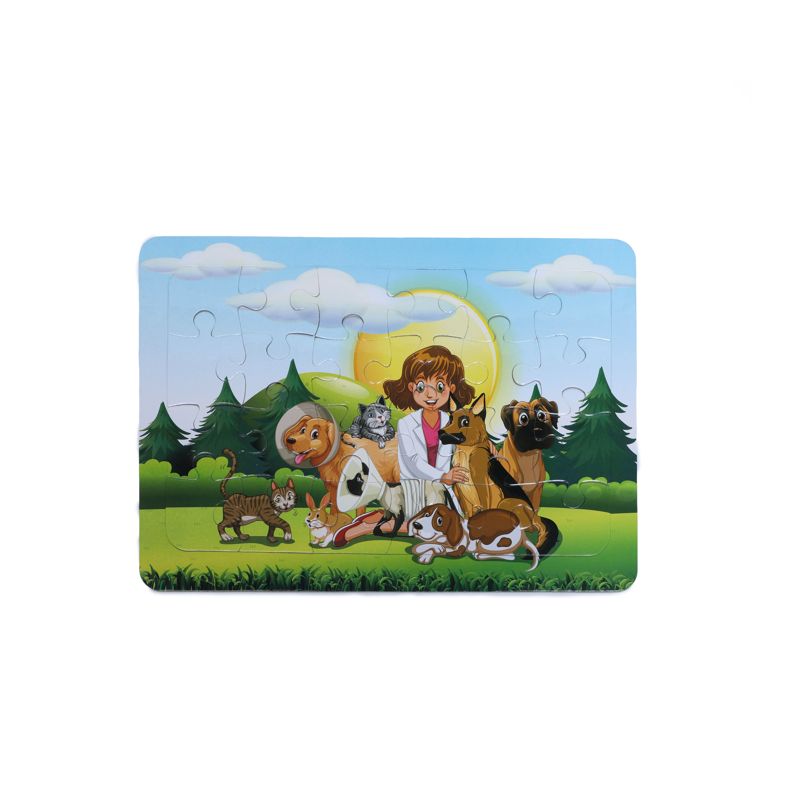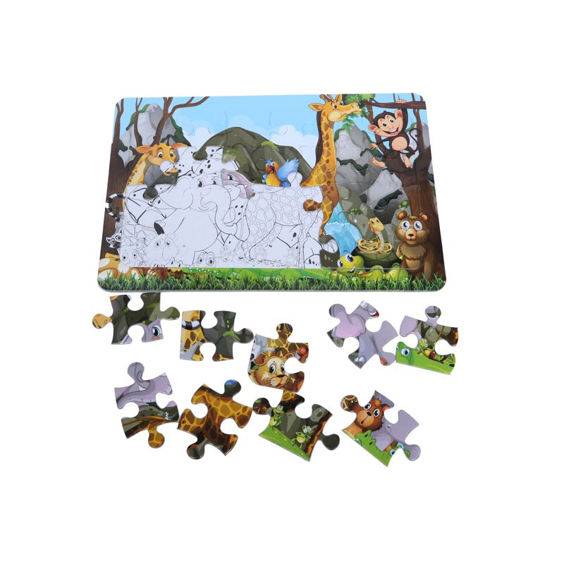 پازل‌ها از مفیدترین وسایل بازی و آموزشی برای کودکان محسوب می‌شوند. پیدا کردن قطعات درست از طریق آزمون و خطا شاید اولین گام‌های کودکان نوپا در فراگیری حل مسئله باشد. در عین حال برداشتن و جایگذاری قطعات کنار هم باعث می‌شود ماهیچه‌های ظریف دست تقویت شوند و هماهنگی بین چشم و دست افزایش یابد. حل کردن پازل نیاز به دقت و تمرکز و صبوری دارد؛ از این طریق کودکان تمرکز و صبر را می‌آموزند. پازل‌های رنگ‌آمیزی کودکانه سری حیوانات در ۴ مدل ۲۴ قطعه‌ای تهیه شده است. زیر قطعات طرح کامل تصویر به صورت خطوط محیطی و بدون رنگ ارائه شده تا کودک راحت‌تر بتواند پازل را کامل کند. این امر ضمن تقویت اعتماد به نفس کودک، این فرصت را فراهم می‌سازد که کودکان بتوانند تصویر را به دلخواه خود رنگ‌آمیزی کنند.