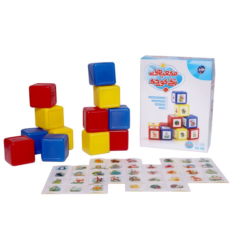 این مجموعهی جذاب و آموزشی شامل ۱۲ مکعب پلاستیکی در سه رنگ اصلی قرمز، آبی و زرد است. تعدادی برچسب نیز از میوهها، حیوانات اهلی، حیوانات وحشی و پرندگان وجود دارد که میتوان آنها را روی مکعبها چسباند و بازیهای فراوانی را برای آموزش مفاهیم گوناگون با کودکان از سن ۸ ماهگی تا ۳ سالگی انجام داد. لبههای گرد این مکعبها که از پلاستیک با کیفیت ساخته شدهاند، برای کودکان کاملاً بیخطر هستند. تقویت حواس، تقویت مهارتهای شناختی، آشنایی با دنیای اطراف و توسعهی زبان از فواید بازی با این مجموعه به شمار میرود.از مکعبهای رنگی کوچک میتوان در خانه، در مهد کودک و خانههای بازی استفاده کرد و برای هدیه دادن در مناسبتهای مختلف ایدهآل هستند.