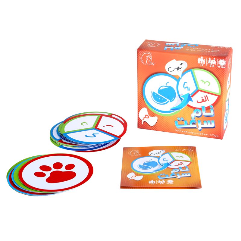 نام سرعت همان بازی آشنا و محبوب اسم فامیل است که به روشی بسیار ابتکاری و البته با سرعتی بالاتر انجام میشود. در این بازی ۱۰ نوع دستهبندی وجود دارد، شامل: نام، میوه، حیوان، رنگ، شهر، کشور، اعضای بدن، اشیاء، غذا و ماشین. این دستهبندیها به سه رنگ متفاوت در پشت کارتها چاپ شدهاند و روی هر کارت ۳ حرف الفبا به همان سه رنگ وجود دارد. هر بار یک کارت رو میشود و بازیکنی که سریعتر کلمهی درست را بگوید کارت را به عنوان امتیاز برمیدارد. اگر هیچ کس نتواند کلمهای را بگوید که با آن حرف شروع میشود، کارت جدیدی رو میشود؛ تا زمانی که کسی کلمهی درست را بگوید و همهی کارتهای رو شده را بردارد. تقویت حافظه، سرعت عمل و افزایش دایرهی واژگان از مزایای بازی نام سرعت است.