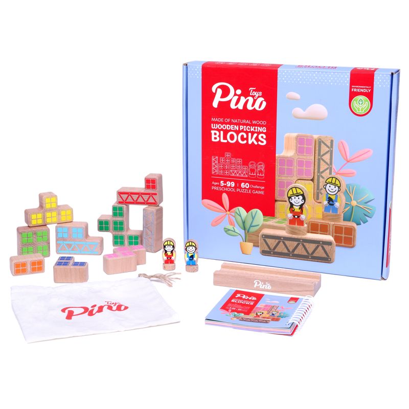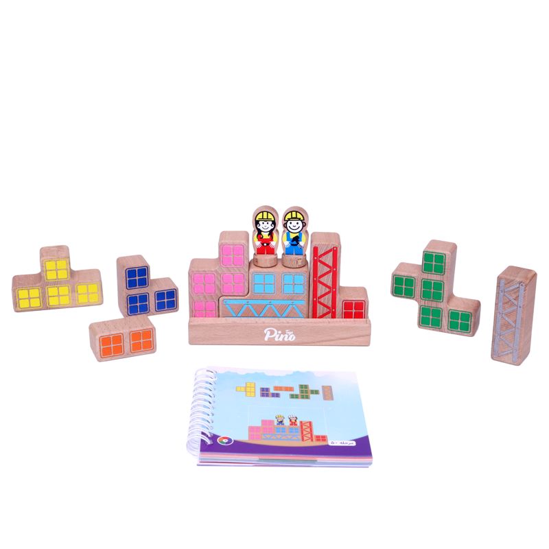 بازی فکری چوبی بلوک چین شامل ۶۰ معمای جذاب و چالشبرانگیز است که به ترتیب از آسان به سخت شمارهگذاری شدهاند. در هر معما باید با توجه به قطعات ارائه شده در دفترچهی بازی یک ساختمان مربع یا مستطیل کامل بسازید و آقای مهندس یا خانم مهندس را طبقه به طبقه به بالای ساختمان برسانید. توجه داشته باشید که معماها را به ترتیب حل کنید تا اعتماد به نفس کودکان تقویت شود. قطعات همگی از چوب طبیعی و رنگهای بیخطر ساخته شدهاند و برای کودکان از ایمنی کامل برخوردار هستند. همراه با این بازی یک کیسهی پارچهای هم برای نگهداری قطعات عرضه شده است.