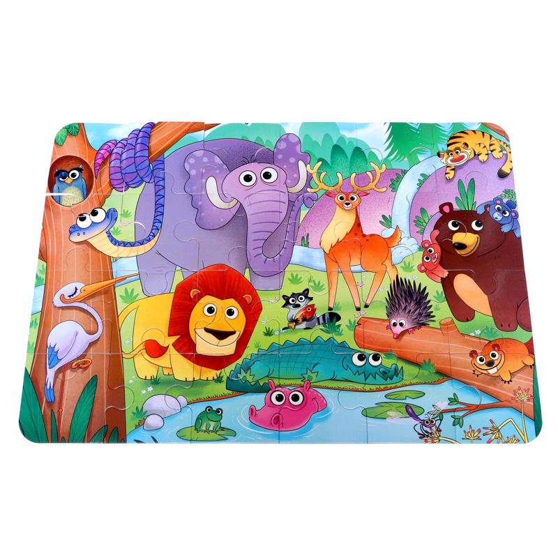 پازلها از جمله بازیهایی هستند که علاوه بر سرگرم کردن کودکان مهارتهای بسیاری را در آنان تقویت میکنند و از جمله آنها را با جهانی که در آن زندگی میکنند، آشنا میسازند. پازل بزرگ در جنگل چه خبر یک پازل با ۲۴ قطعه بزرگ است که در نهایت یک تابلوی ۷۰×۵۰ سانتیمتری از حیوانات مختلف و متنوع جنگل میسازد. کیفیت بالای قطعات و همچنین طراحی و رنگآمیزی بسیار زیبای این پازل از مزیتهای آن به شمار میرود.