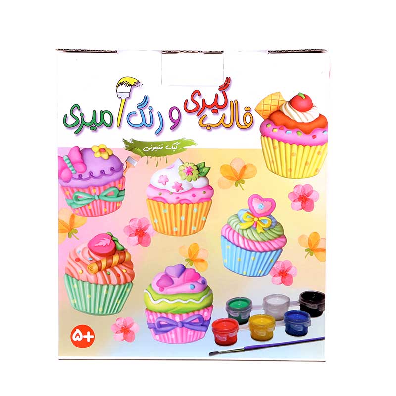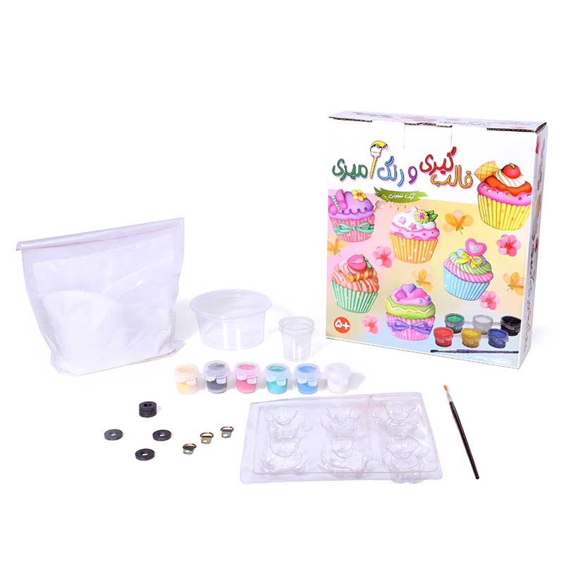 کیک‌های فنجانی از جمله خوراکی‌هایی هستند که بخصوص به خاطر شکل‌ها و رنگ‌های زیبا و متنوع به شدت مورد توجه کودکان قرار می‌گیرند. مجموعه‌ی قالب‌گیری و رنگ‌آمیزی کیک فنجونی این فرصت را ایجاد می‌کند که کودکان بتوانند کیک‌های فنجانی متنوعی بسازند و با این کار ضمن لذت بردن از عمل ساختن، بر خلاقیت، اعتماد به نفس و صبوری خود بیفزایند. این مجموعه شامل پودر مجسمه‌سازی، دو پیمانه‌، یک کاسه برای درست کردن خمیر، قالب برای هر بار درست کردن ۶ کیک فنجانی، شش رنگ اصلی گواش، یک قلم مو، شش قطعه آهنربای حلقه‌ای و دفترچه‌ی راهنماست. کودکان می‌توانند از ۵ سالگی، تحت نظارت بزرگترها، خمیر مجسمه‌سازی را آماده و قالب‌گیری و پس از اضافه کردن آهنربا، در نهایت آن‌ها را به سلیقه‌ی خود رنگ‌آمیزی کنند. از کیک‌های آماده شده می‌توان برای تزئین روی یخچال یا هر سطح فلزی دیگر یا به صورت بخشی از کولاژ استفاده کرد.
