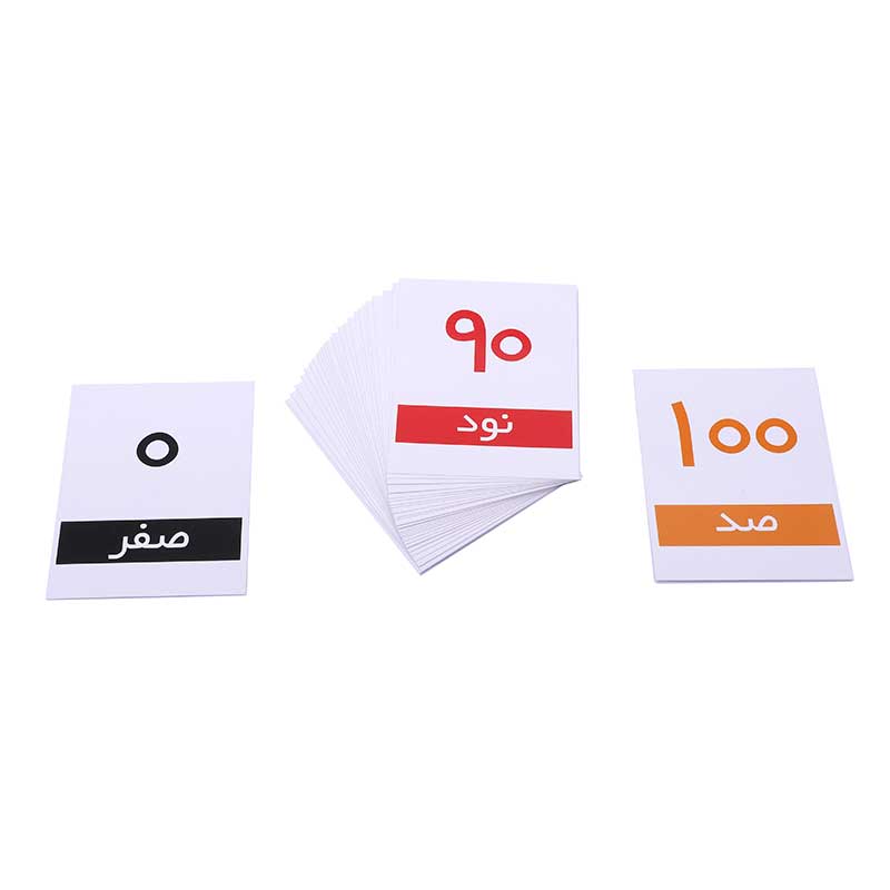 یکی از رایجترین ابزارها برای آموزش اعداد و درک مفهوم عدد فلش کارتها هستند. مجموعه فلش کارت اعداد فارسی نیز به همین منظور تولید شده است. این مجموعه حاوی ۲۹ عدد کارت است که روی آنها شکل عدد به صورت نوشتاری و عددی، و در پشت آنها تصویر چیزی به تعداد همان عدد نشان داده شده است. این امر سبب میشود که کودک مفهوم عدد را بهتر درک کند. روی کارتها اعداد از ۰ تا ۲۰ و سپس به صورت ۱۰ تا ۱۰ تا، یعنی ۳۰، ۴۰، ۵۰، ... تا ۱۰۰ را نشان میدهد. با ترکیب کارتها میتوان ارزش مکانی اعداد و جمع و تفریق را هم آموزش داد.
