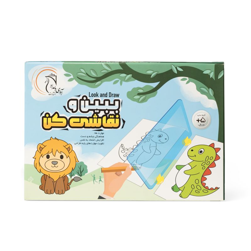 بسیاری از کودکان به دلیل عدم درک چگونگی انتقال اشکال سه بعدی بر روی سطح کاغذ و تبدیل آنها به اشکال دو بعدی، به سادگی طرف نقاشی نمیروند. ببین و نقاشی کن با ساده کردن طراحی خطوط محیطی روند درک این تبدیل را تسریع میکند. این وسیله شامل یک صفحهی طلقی است که روی دو پایهی کوچک سوار میشود. روش کار به این صورت است که یک تصویر آماده یا حتی یک شیء را در یک طرف طلق قرار میدهیم و یک کاغذ سفید را در طرف دیگر. با توجه به انعکاس تصویر روی طلق میتوان خطوط محیطی آن را روی کاغذ کشید. همراه با این وسیله ۱۶ طرح بسیار ساده عرضه شده است که برای شروع میتوان از آنها استفاده کرد.