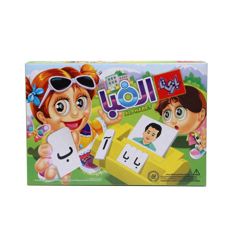 بازی الفبا ابزار بسیار مناسبی برای تمرین و یادگیری شکل نوشتاری کلمات فارسی اول دبستان است. در این بازی ابتدا کارتها را یکی یکی و به ترتیب کلماتی که در کتاب آمده است به کودک نشان داده، سعی میکنیم به خوبی شکل نوشتاری کلمه را یاد بگیرد. سپس هر کارت را روی پایه میگذاریم و روی کلمه را با زائدهی پلاستیکی میپوشانیم. حال کودک باید با استفاده از قطعات فومی کلمه را بسازد. توصیه میشود در هر بار بازی تعدادی از کلمات را آموزش بدهید و سپس در نوبت بازی بعد از او بخواهید کلمات را بدون دیدن شکل کلمه بسازد. تحقیقات نشان داده است که در امر آموزش هر چقدر از ابزار متنوعتری استفاده کنیم، یادگیری عمیقتر و نتیجه ماندگارتر خواهد بود.