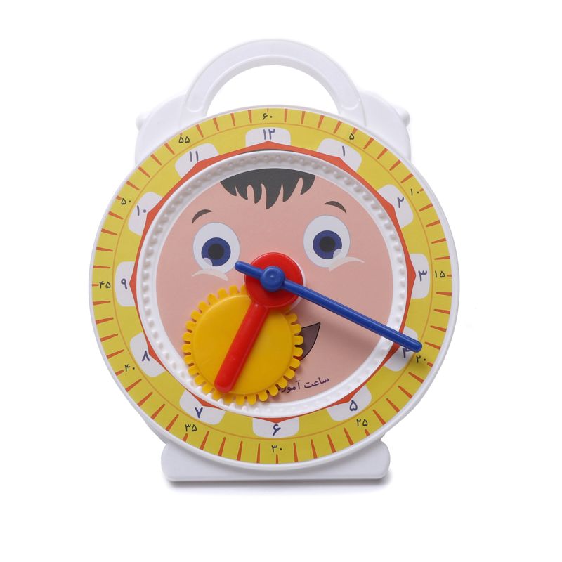در این مجموعه یک عدد ساعت پلاستیکی پایهدار همراه با عقربههای متحرک و اهرم گردش عقربهها ارائه شده است. هدف اصلی از این محصول آموزش ساعت و مفهوم زمان به دانشآموزان مقطع دبستان است. با استفاده از این ساعت دانشآموزان به راحتی میتوانند مفهوم ساعت و دقیقه را بیاموزند. چرخ دنده بزرگ روی صفحهی این ساعت این امکان را برای دانشآموزان فراهم میکند تا با یک دور کامل چرخاندن عقربه دقیقه شمار، عقربه ساعت شمار یک ساعت جابجا شود. این وسیله میتواند یکی از ابزارهای آموزشی بسیار مؤثر در سر کلاس باشد.