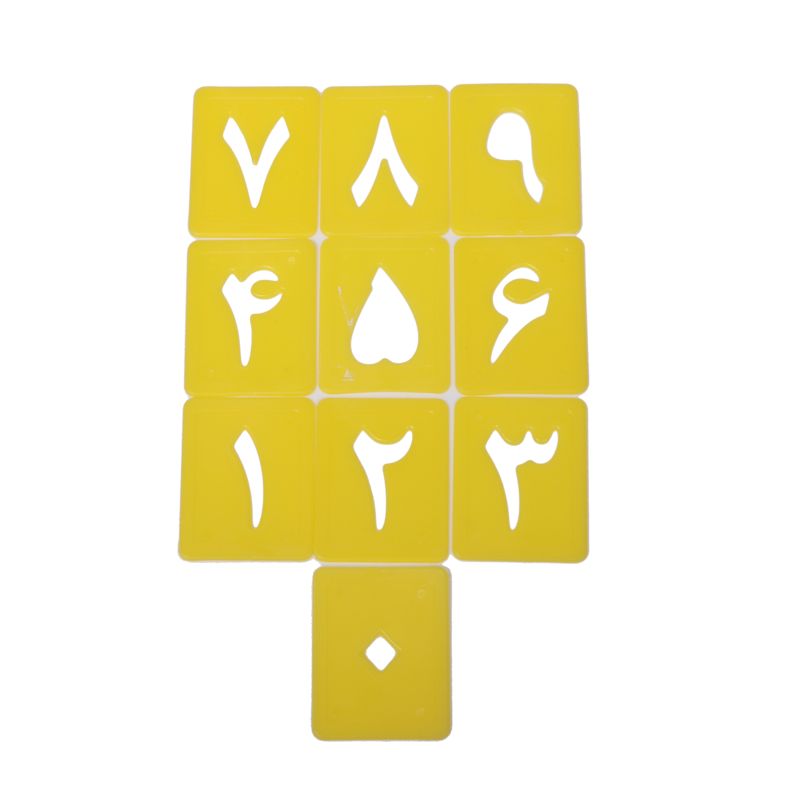 کشیدن تصاویر مختلف با استفاده از شابلون از فعالیتهای مورد علاقهی کودکان است. شابلون اعداد فارسی با توجه به این علاقه اعداد صفر تا نُه را با شابلونهای پلاستیکی عرضه کرده است تا کودکان با استفاده از آنها با شکل فارسی اعداد آشنا شوند. علاوه بر این، برای جذابتر شدن تمرینات ریاضی میتوان از کودک خواست تا با استفاده از این شابلونها تمرینات را بنویسد. با این کار بر دقت و تمرکز کودکان افزوده میشود.