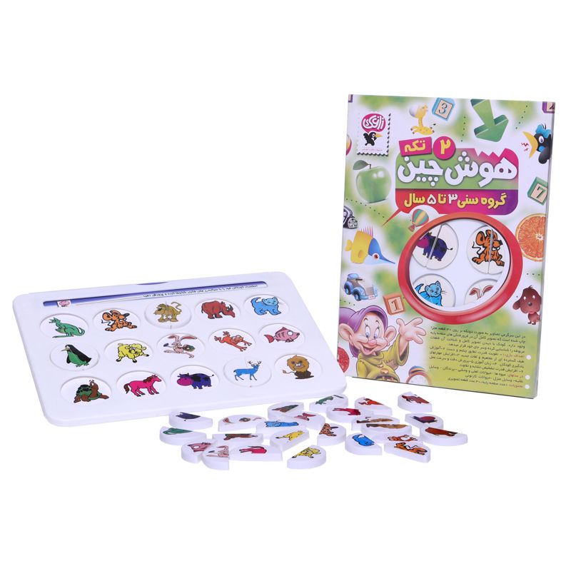 در بازی هوش چین دو تکه، کودک باید ابتدا تصویر کامل روی پایهی پلاستیکی را با دقت نگاه کند و سپس از بین قطعات تشتک مانند، آن دو قطعهای را که تصویر را میسازند بیابد و در کنار هم قرار دهد. در این روند تواناییهای شناختی مختلفی درگیر میشوند؛ از جمله توجه انتخابی و دقت و تمرکز. سپس در پیدا کردن قطعات قدرت حل مسئلهی او به چالش کشیده میشود. در عین حال حافظهی دیداری و حافظهی کوتاه مدت هم در مقایسه قطعات به کار میآیند. برداشتن و کنار هم گذاشتن قطعات نیز مهارتهای حرکتی ظریف کودک را تقویت میکند. همهی اینها نشان میدهد که هوش چین وسیلهای فوقالعاده برای رشد ذهنی کودکان است. هوش چین دو تکه جور در مدلهای میوهها، حیوانات اهلی و وحشی، پرندگان، وسایل نقلیه، وسایل منزل و حیوانات کارتونی عرضه میشود.