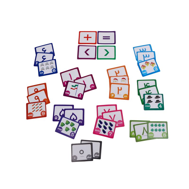 برای آموزش مفهوم عدد، فلش کارتها از ابزار آموزشی بسیار مؤثر هستند و کارت اعداد و علامتها نیز با همین هدف طراحی شده است. در پشت و روی هر کارت یکی از اعداد صفر تا نُه به صورت حروفی و رقمی به دو شکل فارسی و لاتین به همراه شکلهایی به همان تعداد درج شده است. در عین حال کارتهایی با علائم جمع، تفریق، مساوی، کوچکتر و بزرگتر و همچنین از هر عدد سه کارت وجود دارد. بنابراین بعد از آموزش و یادگیری کامل مفهوم اعداد به کمک این کارتها میتوان عملهای جمع و تفریق و تساویهای کوچکتر، بزرگتر یا مساوی را هم آموزش داد.
