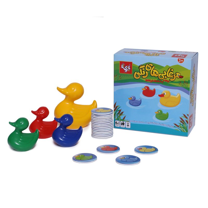 این بازی شامل یک مرغابی مادر، سه عدد جوجه مرغابی و ۲۰ پولک فومی است. با این مجموعه میتوان بینهایت بازیهای قصهگویی انجام داد، در عین حال با کمک پولکهای فومی میتوان علاوه بر انجام روشی که در راهنما آمده است، بازیهای متنوعی را برای تقویت حافظه و افزایش دقت و تمرکز کودکان ابداع کرد. در روش اصلی مرغابیها را پشت سر هم میچینیم و پولکها را یکی یکی رو میکنیم، اگر رنگ پولک با رنگ مرغابی یکسان بود، مرغابی را به اول صف میآوریم. شناخت رنگها و سپری کردن اوقاتی خوش با کودکان از دیگر اهداف این بازی به شمار میرود.