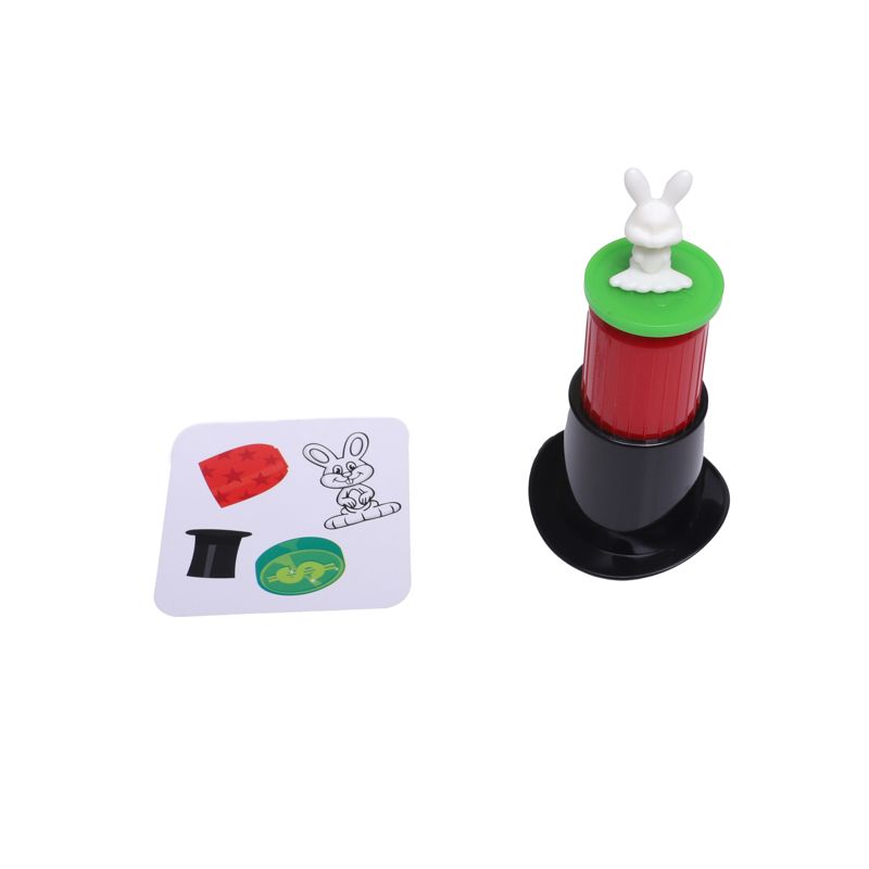 این بازی که با هدف تقویت دقت و تمرکز، چابکی دست و افزایش هوش اجتماعی کودکان طراحی شده، دارای تعدادی وسایل شعبدهبازی شامل کلاه، فنجان، استوانه، سکه و خرگوش است. روش بازی به این صورت است که به هر یک از بازیکنان یک دست وسایل شعبدهبازی داده میشود. کارتهای بازی نیز بُر خورده، به پشت در وسط بازی قرار میگیرد. یکی از بازیکنان یکی از کارتها را رو میکند و همهی بازیکنان بایدبه سرعت وسایل خود را طبق کارت طوری روی هم بچینند که: وسایل رنگی روی کارت دیده شوند، وسیلهی خاکستری دیده نشود و از وسیلهای که در کارت نیست، در چیدمان استفاده نشود.کسی که زودتر از همه وسایلش را طبق کارت بچیند، کارت را به عنوان امتیاز برای خود برمیدارد و کارت بعدی را رو میکند.