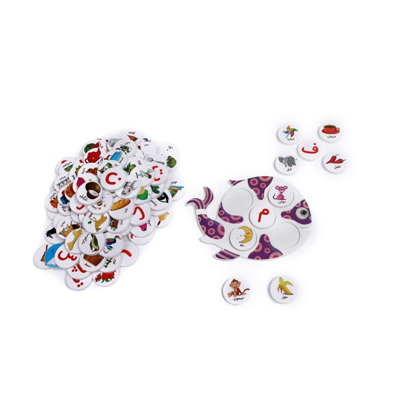 یکی از روشهای بسیار مفید و رایج برای یادگیری حروف الفبا به خاطر سپردن کلماتی است که با هر یک از حروف شروع میشوند. در هوش چین ارتباطی الفبا نیز از همین روش استفاده شده است. در این محصول ۲۴ مورد از پر تکرارترین حروف الفبای فارسی، از جمله چهار شکل حرف الف، روی تشتکهای پلاستیکی درج شده است. مربی یا بزرگتر کودک یکی از این حروف را در وسط پایهای که به شکل ماهی یا لاکپشت است قرار میدهد و کودک باید چهار کلمه را که با آن حرف شروع میشوند پیدا کند و در کنار تشتک وسط بگذارد. کلمات همراه با تصویر هستند و سعی شده است از کلماتی استفاده شود که برای کودک آشنا هستند تا به خاطر سپردن آنها راحتتر باشد.