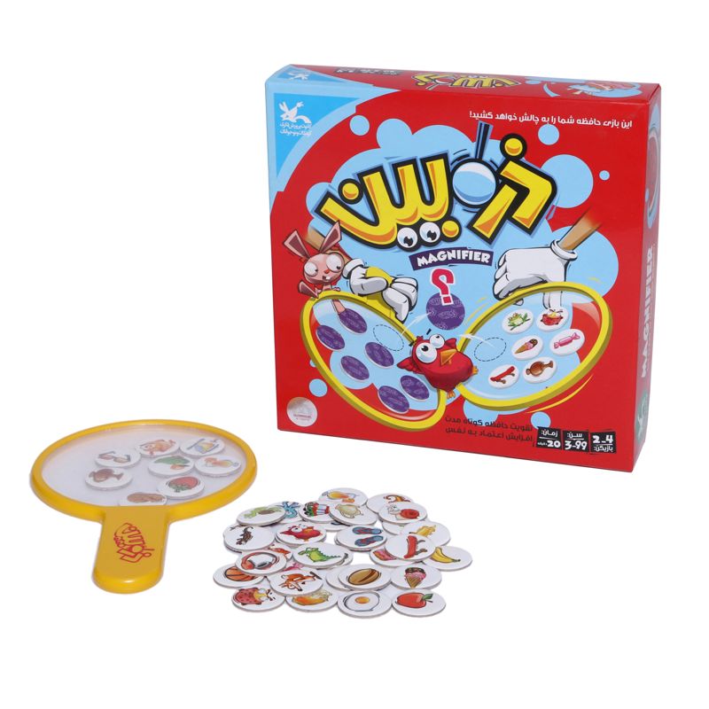 ذرهبین یک بازی شیرین و ساده و در عین حال بسیار مفید برای تقویت حافظهی دیداری است. این بازی به گونهای طراحی شده است که گروههای سنی مختلف از ۳ سال به بالا میتوانند با هر تعداد بازیکن آن را بازی کنند. بازی به این صورت انجام میشود که تعدادی تصویر داخل ذرهبین قرار میگیرد و همهی بازیکنان به مدت ۱۰ ثانیه به آنها نگاه میکنند. سپس ذرهبین برگردانده و به خوبی تکان داده میشود تا تصاویر جابجا شوند. بعد یکی از تصویرها به پشت، طوری که تصویر آن معلوم نباشد، از شیار پایین ذرهبین خارج و ذرهبین برگردانده میشود. کسی که زودتر از همه تشخیص دهد چه تصویری خارج شده، برندهی بازی است.