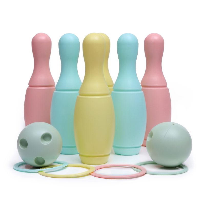 بازی بولینگ از جمله فعالیتهای فیزیکی مفید و جذاب برای تمام گروههای سنی است. بچههای کوچکتر با انداختن، قل دادن و گرفتن توپ هماهنگی بین دست و چشم خود را افزایش میدهند و سرعت و مهارتهای حرکتی آنان تقویت میشود. علاوه بر این، انجام این بازی موجب افزایش شادابی و سلامت جسمی کودکان میشود. این بسته برای دو بازی بولینگ و حلقه پرتاب طراحی شده است. این بازیها را میتوان به صورت انفرادی و یا گروهی با اعضای خانواده و دوستان انجام داد. از ویژگیهای این محصول کیفیت عالی و وزن مناسب آن است که استفاده از آن را در خانه، مهد کودک و هر جای دیگر آسان میسازد. بولینگ و حلقهی پرتاب کیفی در اندازهی کوچک نیز تولید شده است.