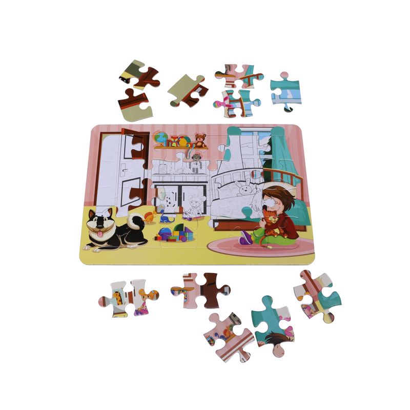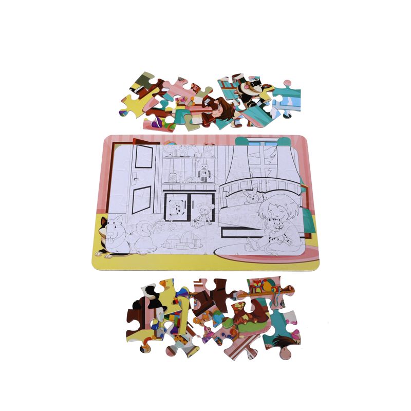 دیدن تصاویری از کنار هم بودن کودکان در کنار هم، در حال بازی و تلاش و شادی، به خودی خود حس خوبی در کودکان ایجاد میکند. حال اگر این تصاویر به صورت پازلهای ۲۴ قطعهای باشند فواید بیشماری را در بر خواهند داشت. در واقع پازلها از مفیدترین وسایل بازی و آموزشی برای کودکان محسوب میشوند. پیدا کردن قطعات درست از طریق آزمون و خطا شاید اولین گامهای کودکان نوپا در فراگیری حل مسئله باشد. در عین حال برداشتن و جایگذاری قطعات کنار هم باعث میشود ماهیچههای ظریف دست تقویت شوند و هماهنگی بین چشم و دست افزایش یابد. حل کردن پازل نیاز به دقت و تمرکز و صبوری دارد؛ از این طریق کودکان تمرکز و صبر را میآموزند. پازلهای رنگآمیزی کودکانه سری دوستی در ۴ مدل تهیه شده است. زیر قطعات طرح کامل تصویر به صورت خطوط محیطی و بدون رنگ ارائه شده تا کودک راحتتر بتواند پازل را کامل کند. این امر ضمن تقویت اعتماد به نفس کودک، این فرصت را فراهم میسازد که کودکان بتوانند تصویر را به دلخواه خود رنگآمیزی کنند.