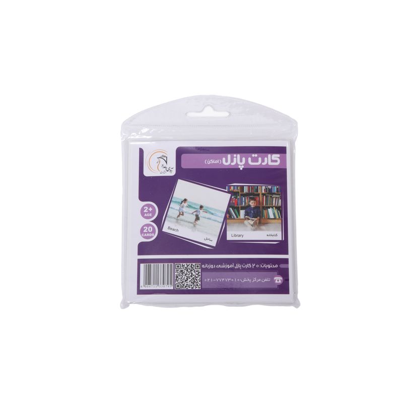 بهترین روش برای شناخت مکانهای مختلف این است که کودک را به آن مکان برده و امکان شناخت همه جانبهی آن را برای کودک فراهم کرد. اما در عالم واقع برای مکانهای گوناگون چنین امری تقریباً ناشدنی است. کارت پازل آموزشی اماکن این امکان را فراهم میسازد که در مورد مکانهای مختلف با کودک به گفتگو پرداخت و در حد امکان آنها را با جاهای مختلف آشنا کرد. در این کارتها نام اماکن به دو زبان فارسی و انگلیسی آورده شده و علاوه بر آن امکان قیچی کردن کارتها و تبدیلشان به پازلهای دو قطعه و چهار قطعه وجود دارد.