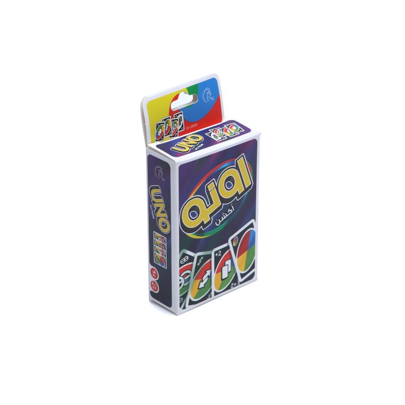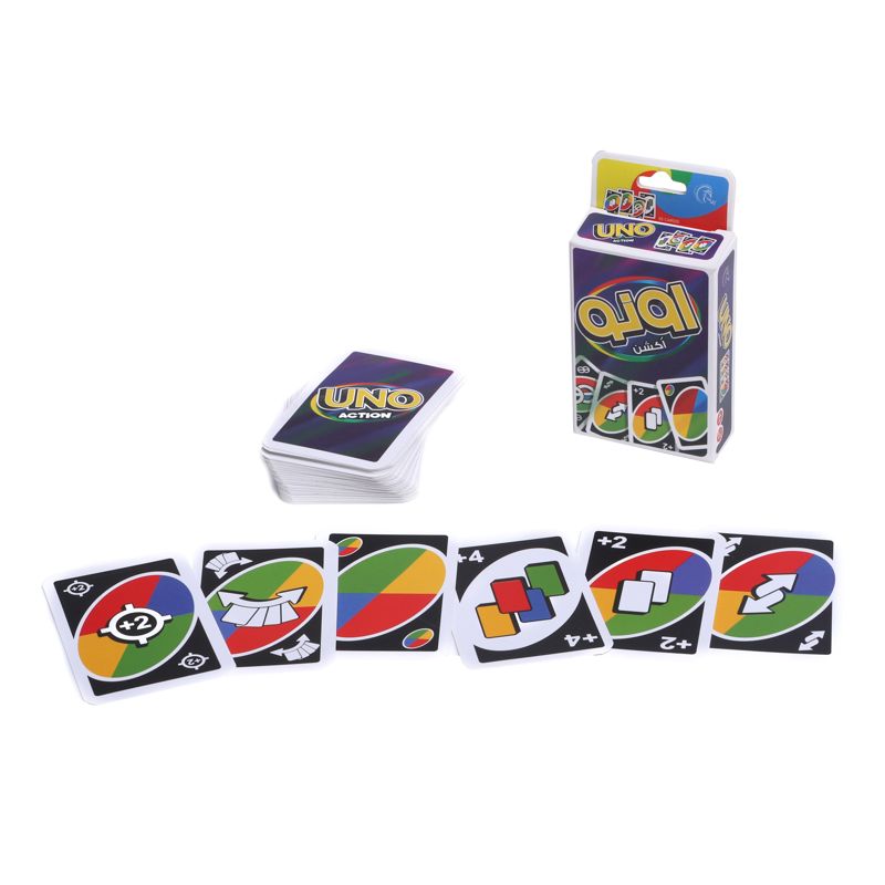 اونو اکشن نسخهای منحصر به فرد از بازی خانوادگی و محبوب اونو کلاسیک است که در آن از کارتهای اعداد خبری نیست. در این بازی فوقالعاده سریع و هیجانانگیز بازیکنان همیشه میتوانند در نوبت خود کارتی را بازی کنند؛ اما آنطور که به نظر میرسد به هیچ وجه ساده نیست. وجود سه کارت تعویض دست (که به بازیکن اجازه میدهد کارتهایش را با بازیکن دیگری عوض کند)، تارگت (که با کمک آن میتوان انتخاب کرد چه کسی دو کارت بردارد) و دبل اسکیپ (که دو نفر بعدی را یک دور از بازی محروم میکند) باعث میشود روند بازی دائماً و در یک چشم به هم زدن تغییر کند و این نتیجهی بازی را غیر قابل پیشبینیتر میکند. علاوه بر این، با ترکیب کارتهای اونو اکشن با کارتهای نسخههای دیگر اونو میتوان بازیهای متنوع و جذابتری را تجربه کرد.