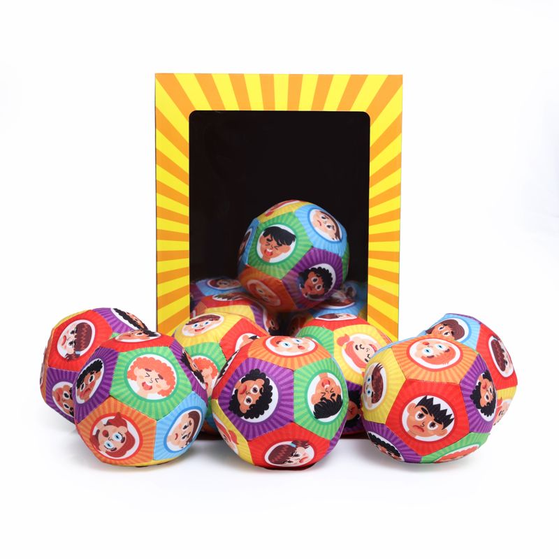 توپ از جمله بازی هایی است که از کودکی تا بزرگسالی همراه تمامی افراد است. این توپ از جنس پارچه ای نرم است که داخل یک کیف قرار داردو تهیه شده از مواد کاملا بهداشتی می باشد که قابلیت شستشو را نیز دارد. از نظر وزنی خیلی سبک است و هیچ گونه آسیب و خطری ندارد و همچنین به دلیل نرم بودن باعث افزایش مهارت های دست ورزی می شود.روی این توپ صورتک هایی قرار دارد که احساسات را به کودک آموزش می دهد.