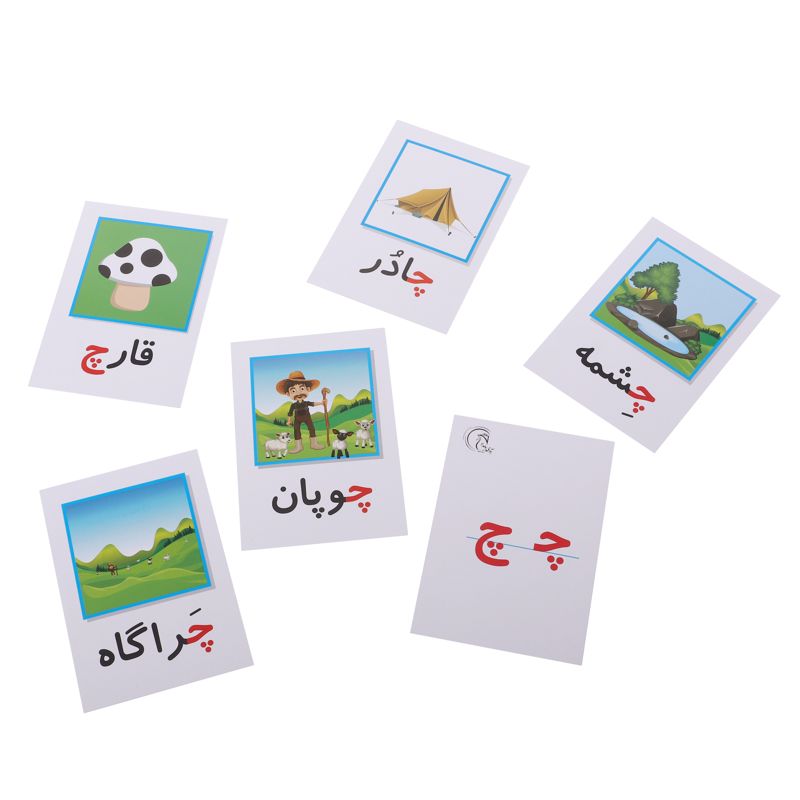 کارتهای نشانهها شامل مجموعهای ۱۵۰ کارت است که تمام حروف الفبای فارسی و جایگاه آنها در کلمات مختلف را دقیقاً مطابق کتاب فارسی اول دبستان نشان میدهند. تصاویر جذاب و کیفیت کارتها باعث میشود کودکان با اشتیاق بیشتری نسبت به کتاب درسی تمرینات را انجام دهند. هر بار که کارتی به کودک نشان داده میشود به تصویر و شکل کلی نوشتاری کلمه توجه میکند از آنجا که جایگاه حروف مورد نظر به رنگ قرمز چاپ شدهاند این شکل خاص حروف در ذهن کودک نقش میبندد. ۳۰ کارت از این مجموعه به حروف الفبا اختصاص یافته است که دانشآموز میتواند کارتهای مربوط به جایگاه هر حرف کنار کارت مربوط به آن بچیند.
