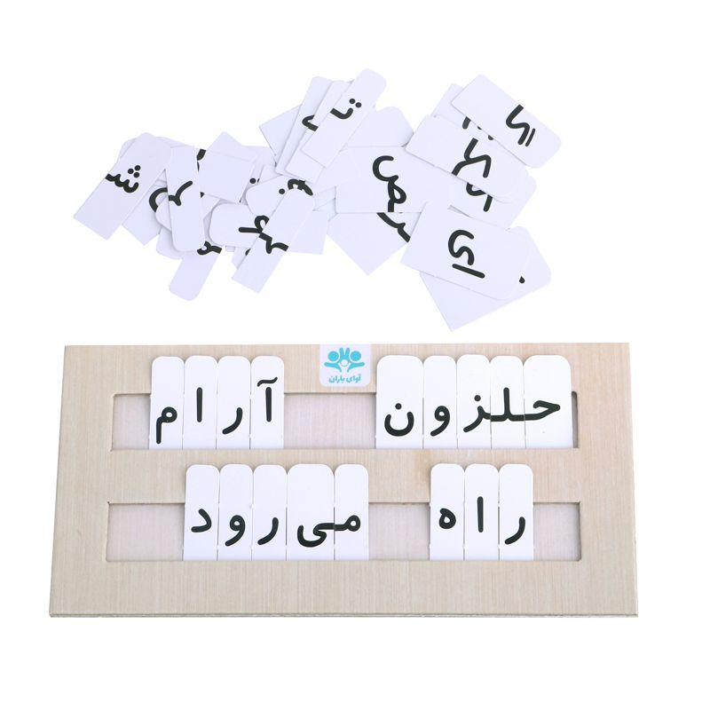 کارگاه کلمات وسیلهای است فوقالعاده برای تمرین شکل نوشتاری کلمات و همچنین ساختن جملهها؛ بخصوص برای آنها که در برابر نوشتن مقاومت میکنند. در این وسیله تمامی شکلهای حروف در ابتدا، وسط و آخر کلمه به صورت کارتهای کوچک و به تعداد کافی وجود دارد. کودک میتواند به راحتی با کنار هم قرار دادن و جایگذاری آنها در شکاف صفحهی کارگاه، تمامی کلمات کتاب فارسی اول ابتدایی و همچنین هر کلمهی دیگری را بسازد و از این راه املای کلمات را به صورت حروف چاپی تمرین کند. با توجه به دو ردیفه بودن صفحه، امکان ساخت جملات کوتاه نیز وجود دارد.