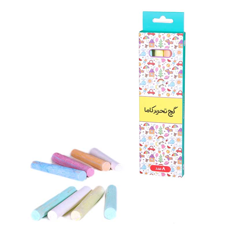 این محصول شامل ۸ قطعه گچ بسیار با کیفیت برای استفاده روی تخته سیاه یا هر سطح مناسب دیگر است. اندازهی گچها به طول ۸ سانتیمتر و به قطر ۱۲ میلیمتر است. رنگ گچها آبی، سبز، زرد، نارنجی، صورتی و سفید را شامل میشود که از رنگ سفید و یک رنگ مهم دیگر دو قطعه وجود دارد. گچ کاما علاوه بر بستهی ۸ عددی به صورت ۱۲ عددی نیز عرضه میشود.
