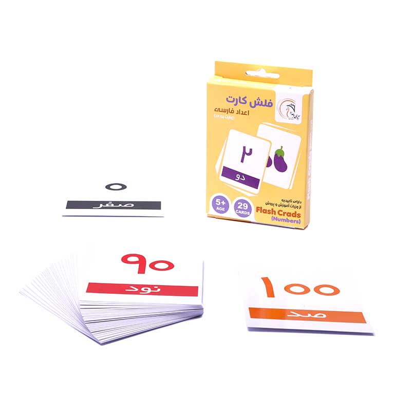یکی از رایجترین ابزارها برای آموزش اعداد و درک مفهوم عدد فلش کارتها هستند. مجموعه فلش کارت اعداد فارسی نیز به همین منظور تولید شده است. این مجموعه حاوی ۲۹ عدد کارت است که روی آنها شکل عدد به صورت نوشتاری و عددی، و در پشت آنها تصویر چیزی به تعداد همان عدد نشان داده شده است. این امر سبب میشود که کودک مفهوم عدد را بهتر درک کند. روی کارتها اعداد از ۰ تا ۲۰ و سپس به صورت ۱۰ تا ۱۰ تا، یعنی ۳۰، ۴۰، ۵۰، ... تا ۱۰۰ را نشان میدهد. با ترکیب کارتها میتوان ارزش مکانی اعداد و جمع و تفریق را هم آموزش داد.